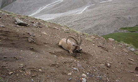 The Fauna of this wide mountainous area is presented by a big variety of hoofed animals like antelopes, deer, wild boars, Siberian goats (tecks), and rare predators like snow leopards, Tyan-Shan bears, and wolves.